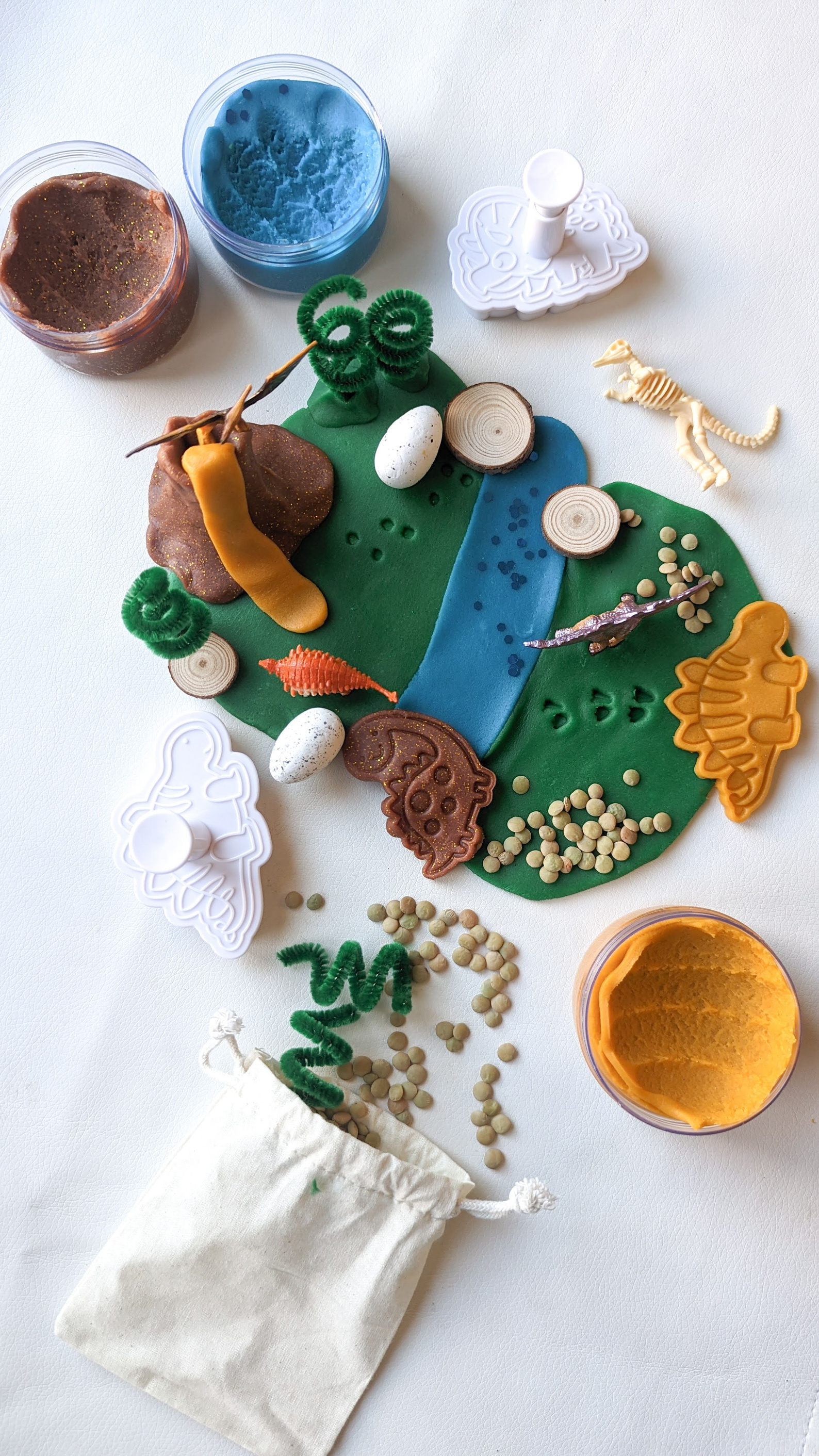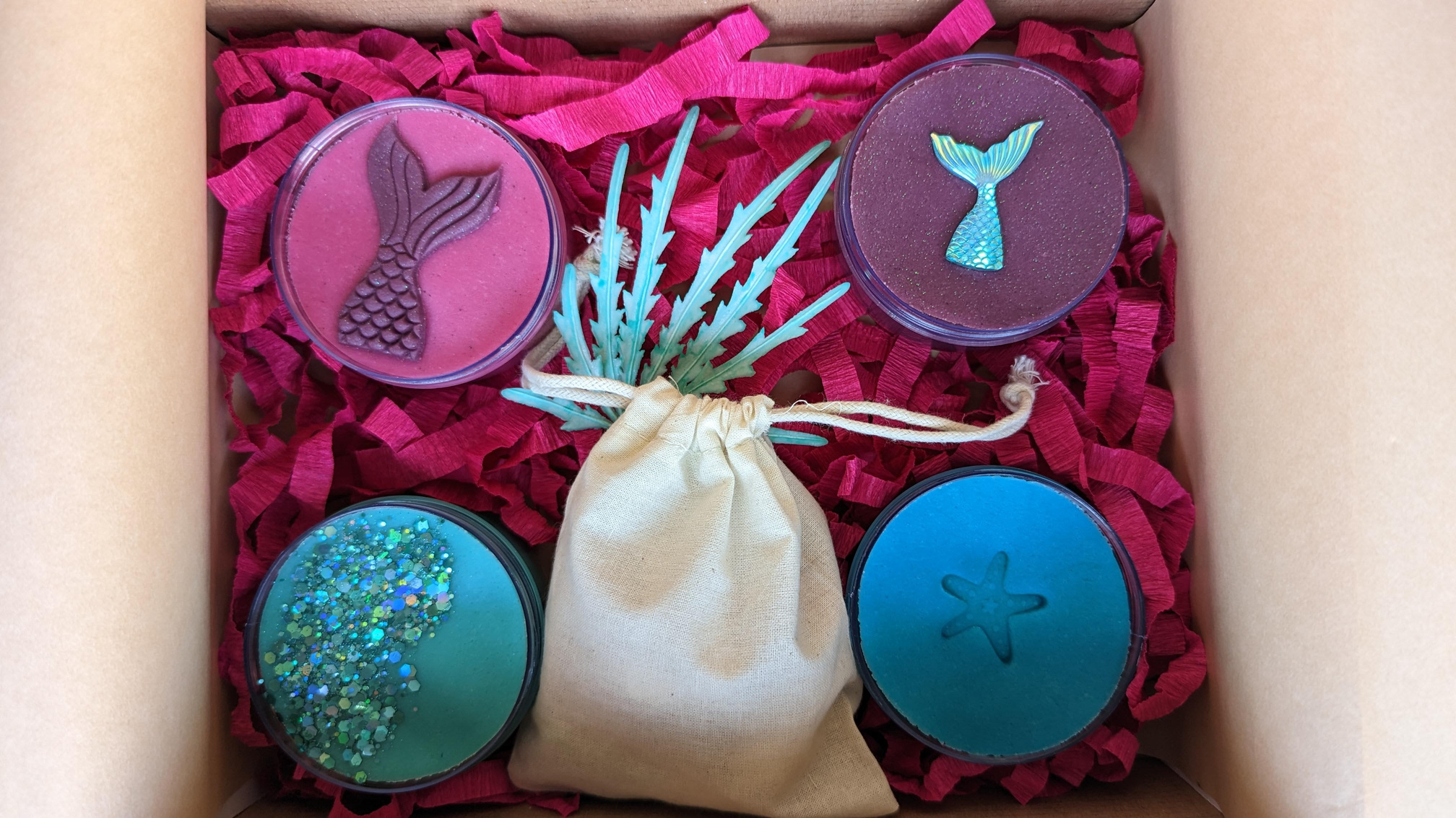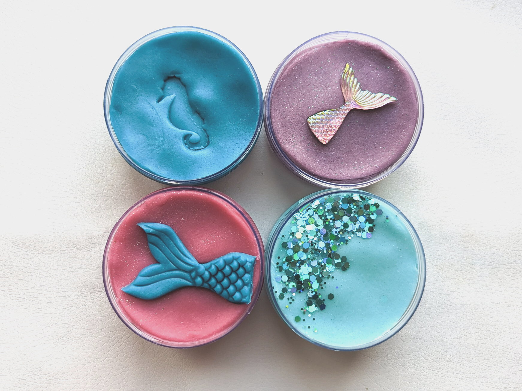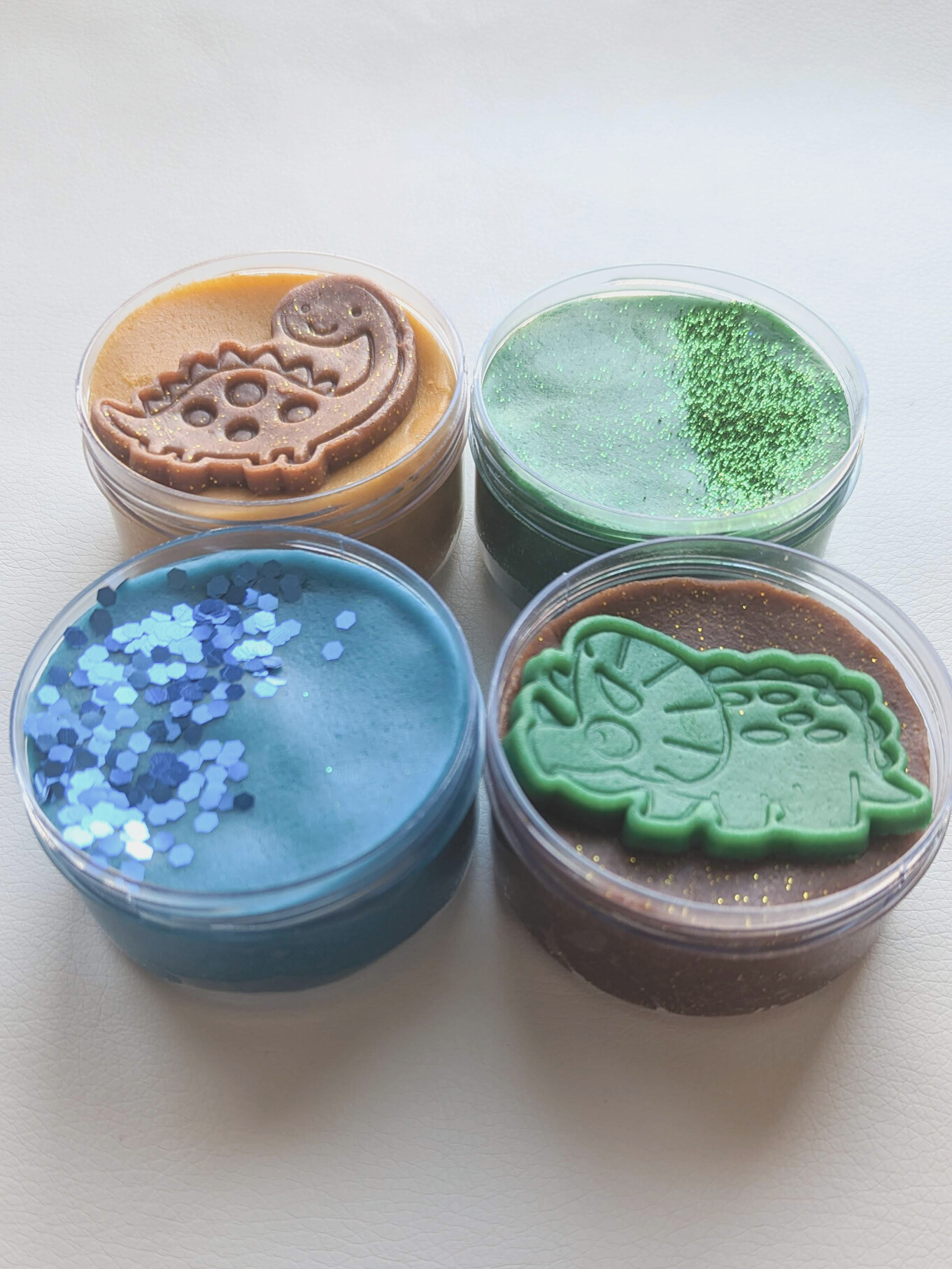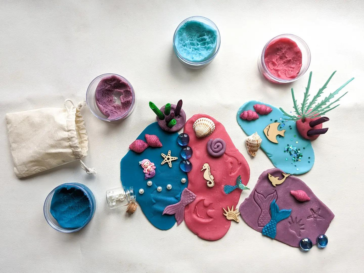 Секоја тематска кутија се состои од 4 пакетчиња (по 100ml) рачно изработен, нетоксичен пластелин и сензорни елементи кои промовираат развој на имагинацијата кај детето.
